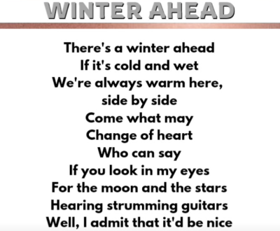 - 가사 : "겨울이 다가와 춥고 궂은 날씨라도 우리는 낙원에서 항상 따뜻할 거예요" 와 같은 로맨틱하고 따듯한 내용