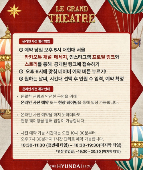 1) 온라인 사전 예약 : 더현대 서울 인스타 공식 계정에 예약링크가 오픈됩니다.