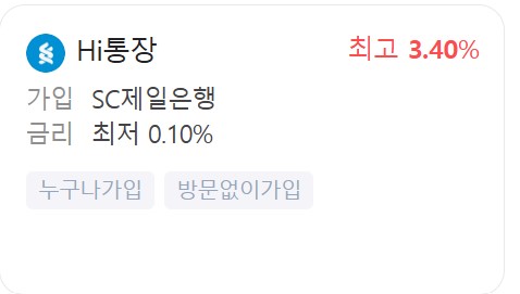 | SC제일은행 | Hi통장 | 기본 0.1% 연 3.40% |